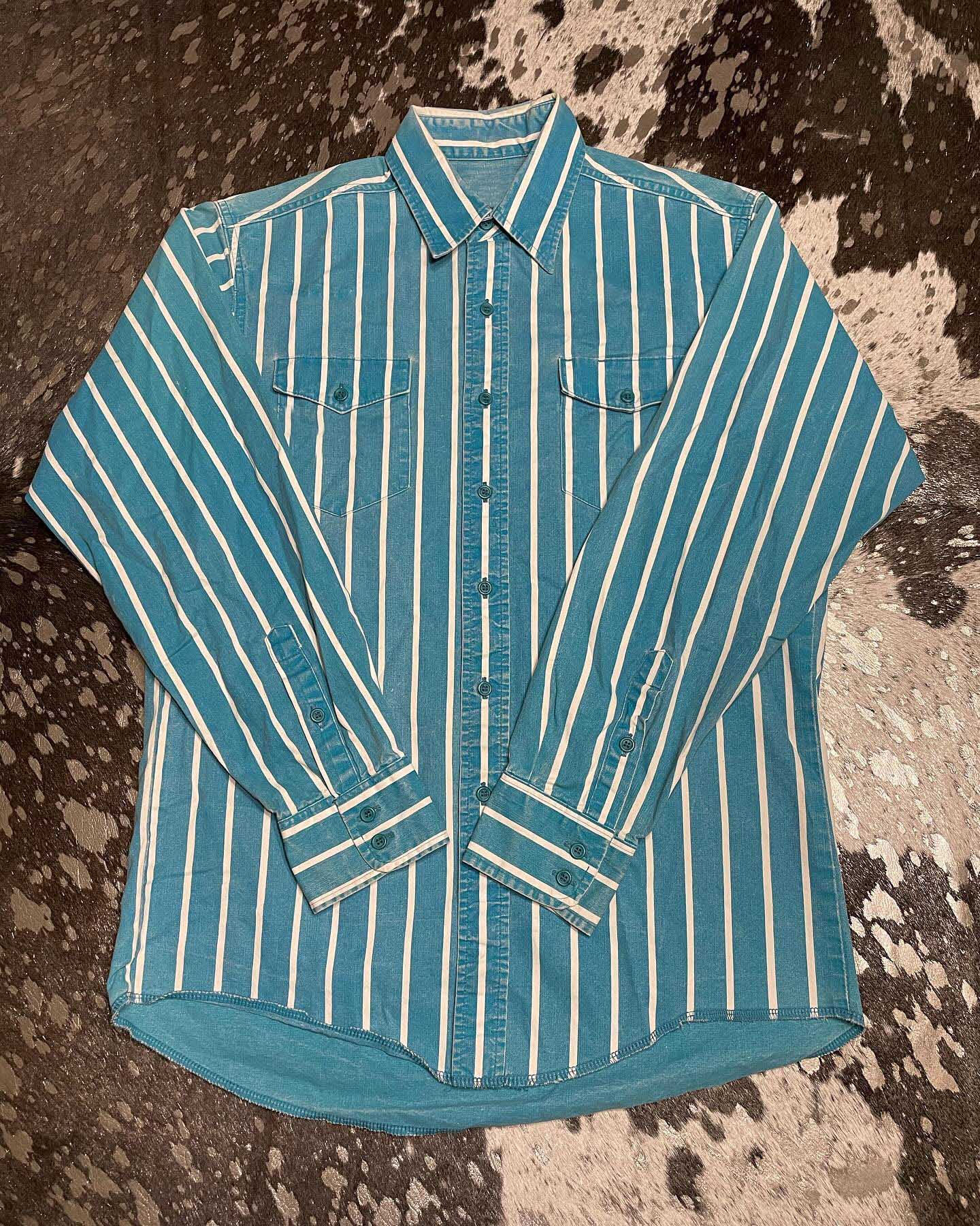 Men's Casual Vintage Blue Striped Long Sleeve Shirt