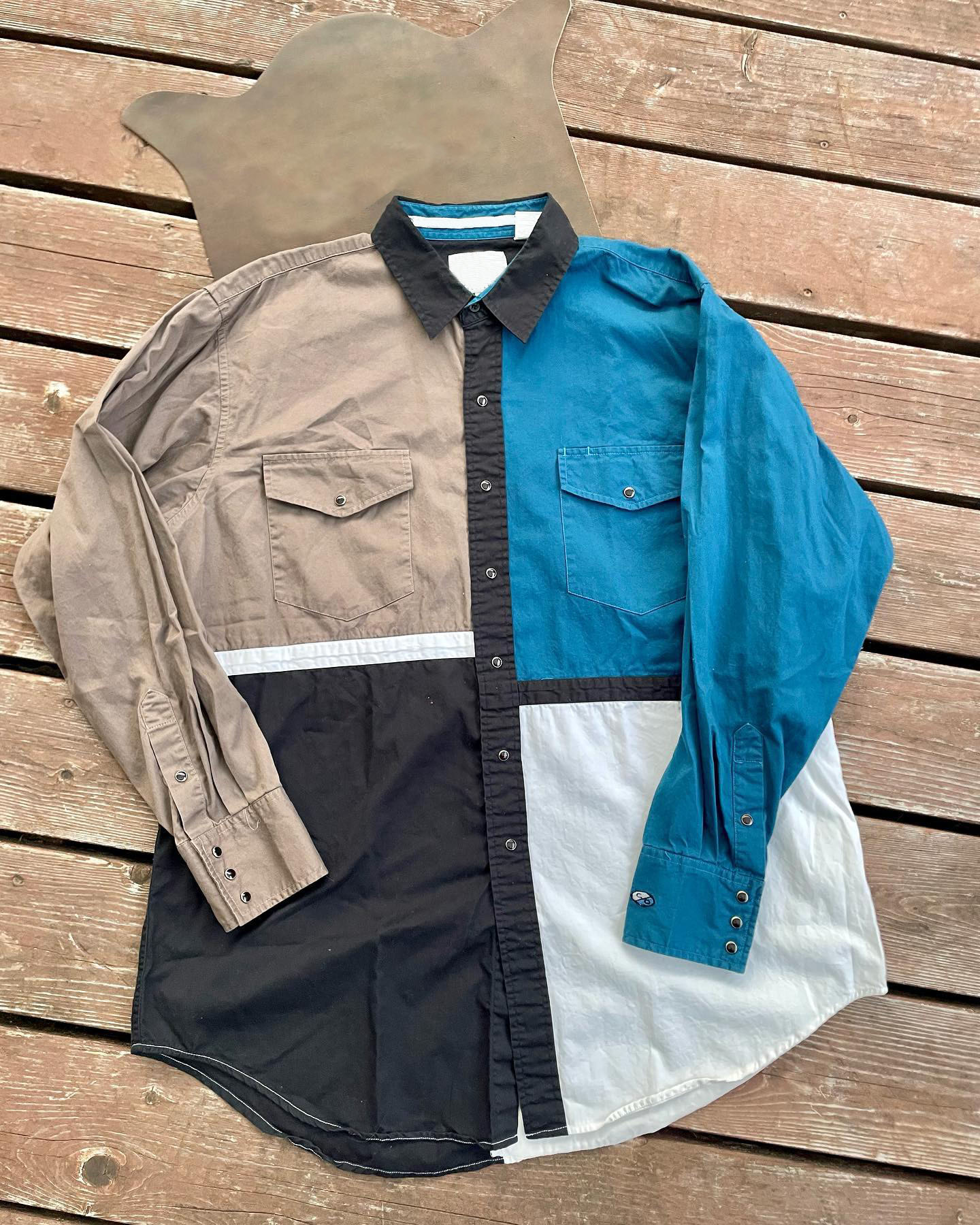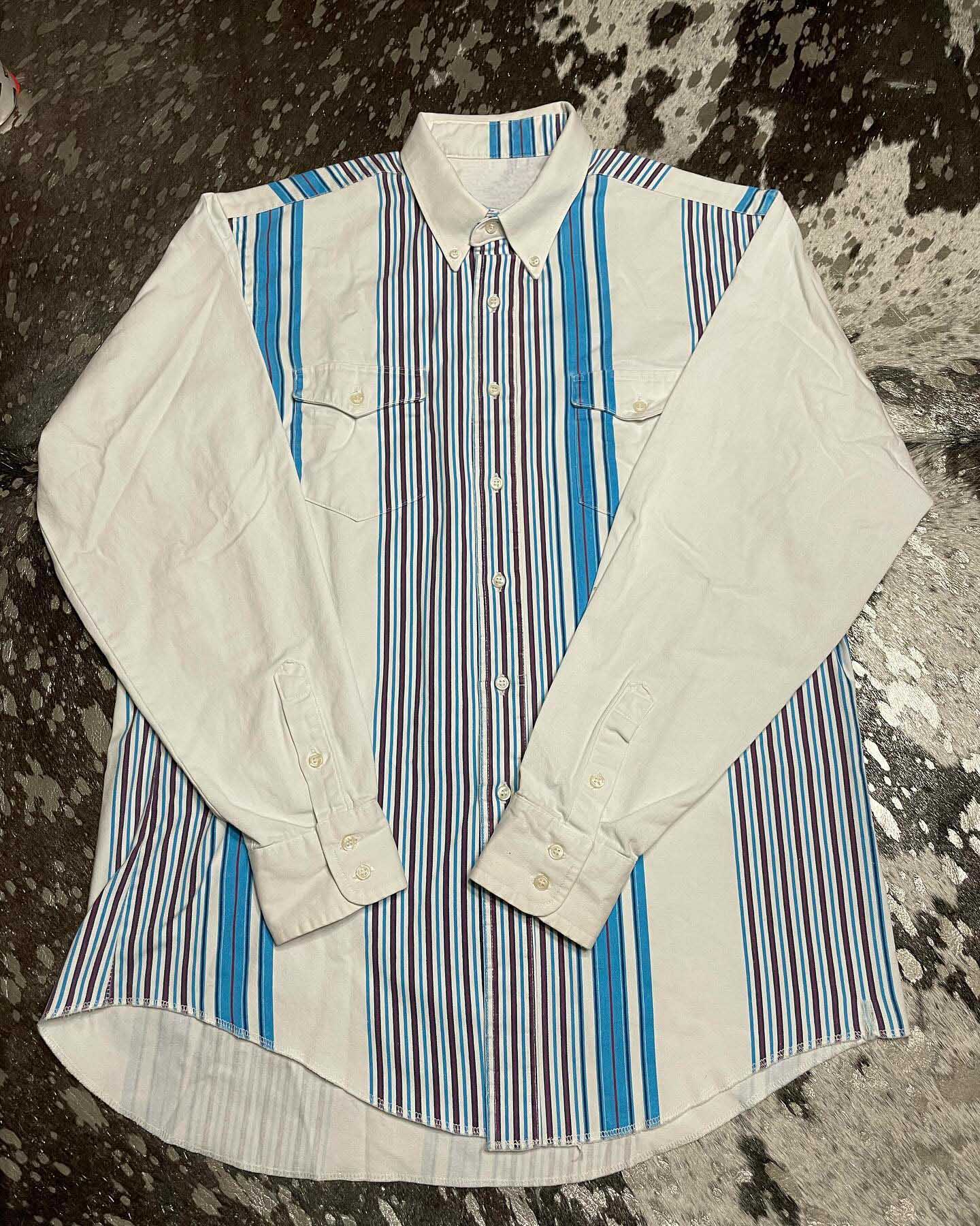 Men's Retro Casual Blue Patchwork Striped Print Long-sleeved Shirt