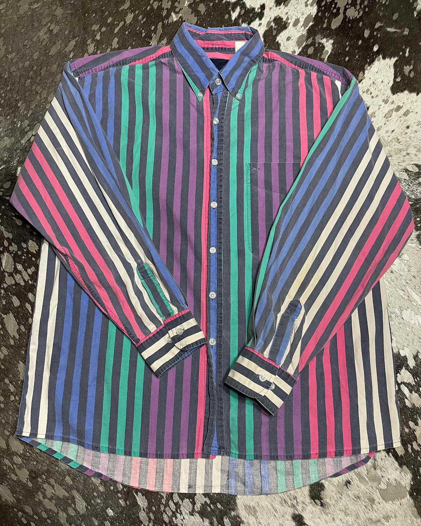 Men's Retro Casual Green and Yellow Striped Shirt