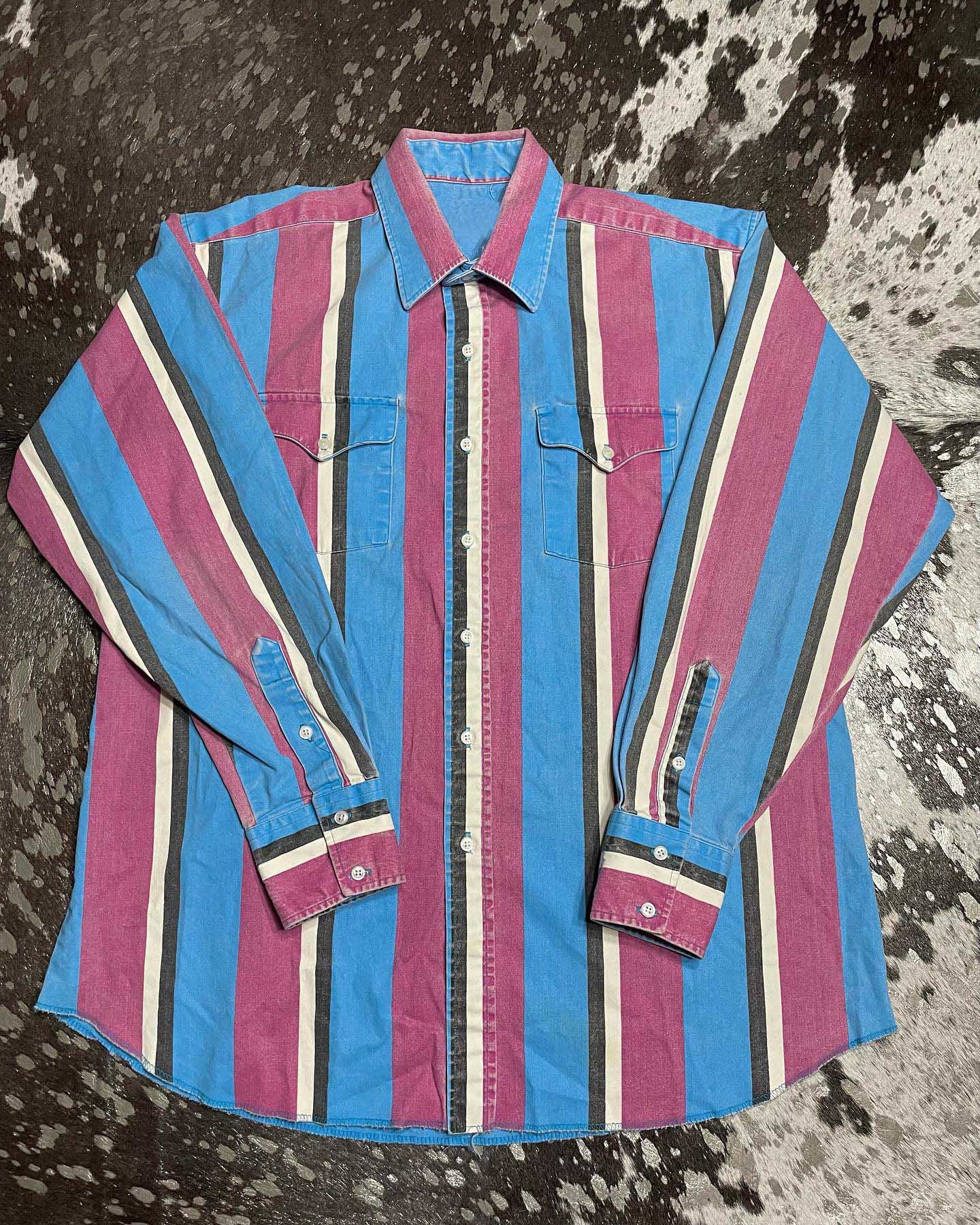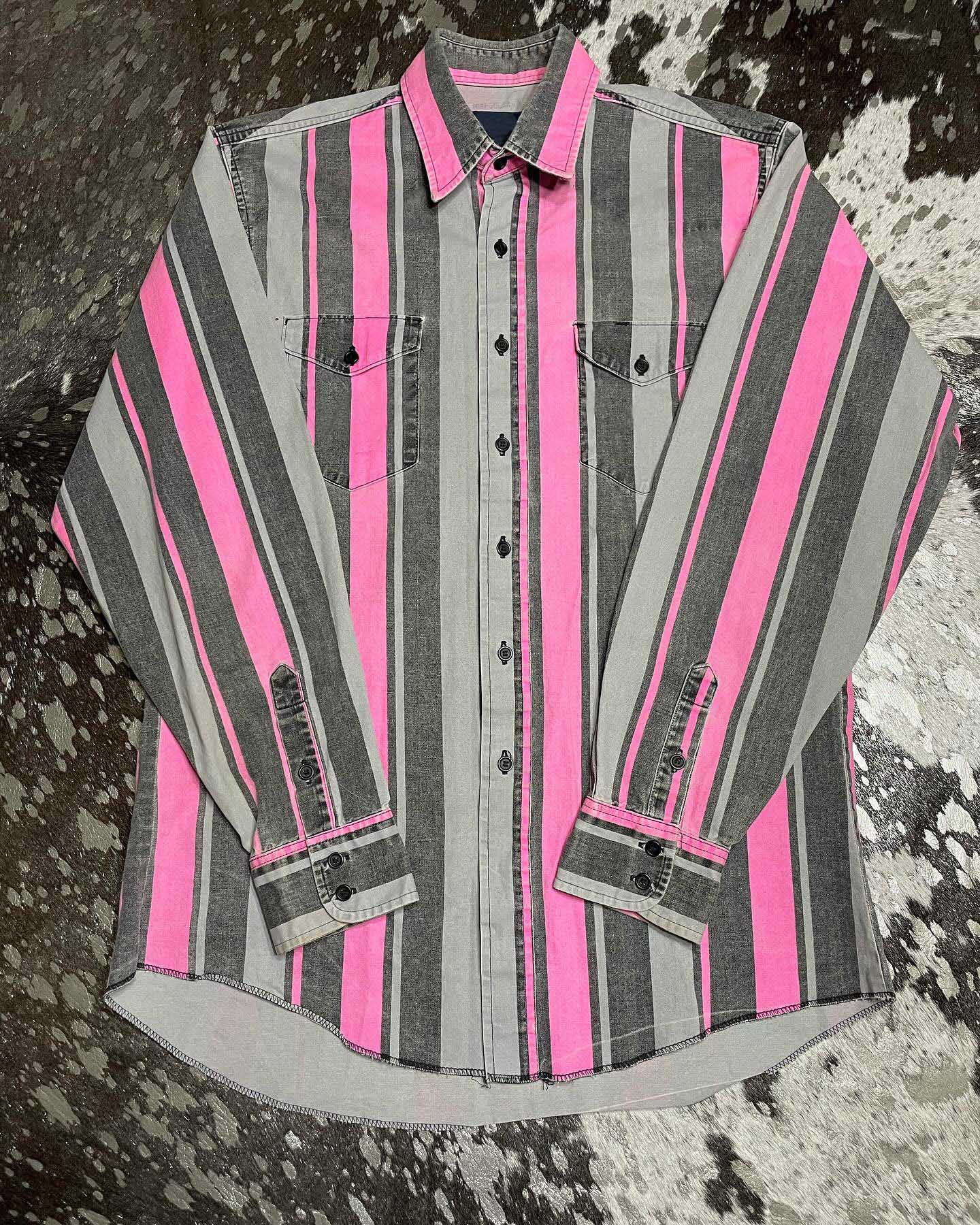 Men's Casual Vintage Pink Striped Long Sleeve Shirt