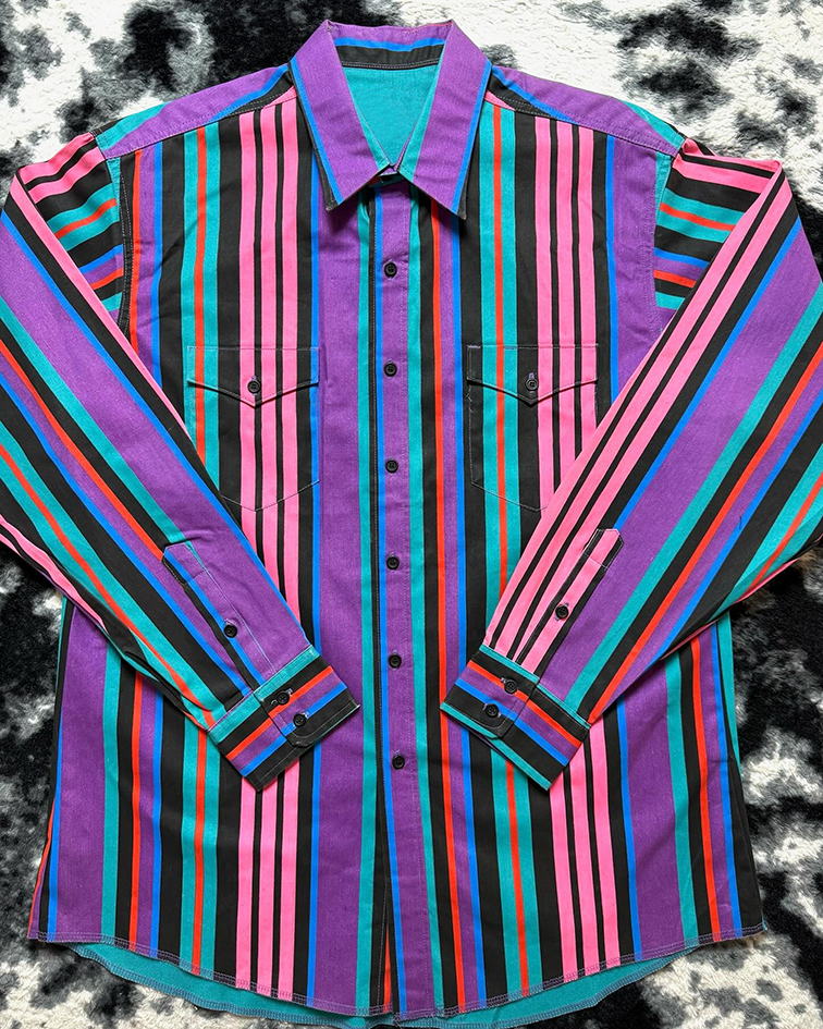 Men's Casual Retro Purple Striped Long Sleeve Shirt