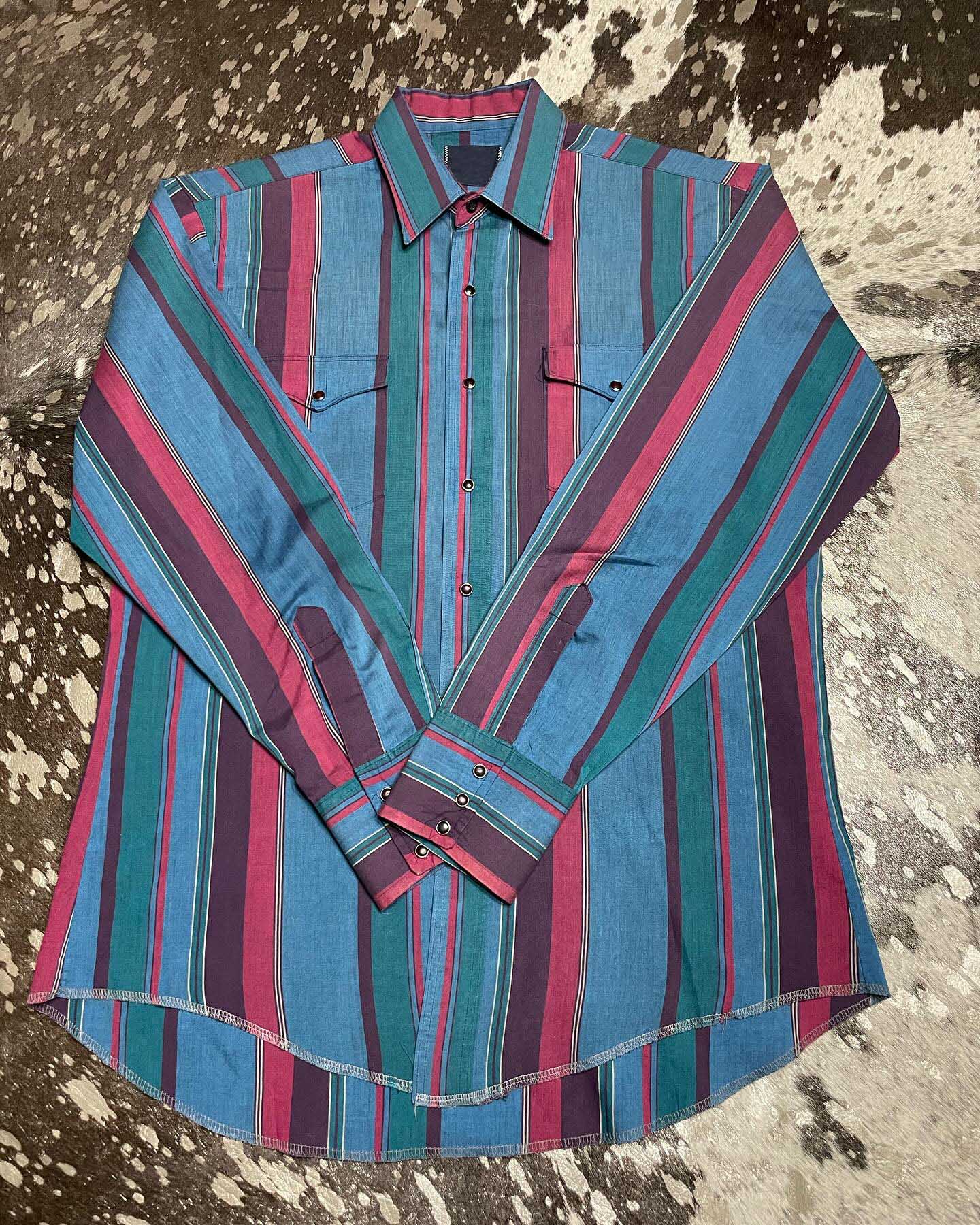 Men's Western Casual Green Striped Shirt