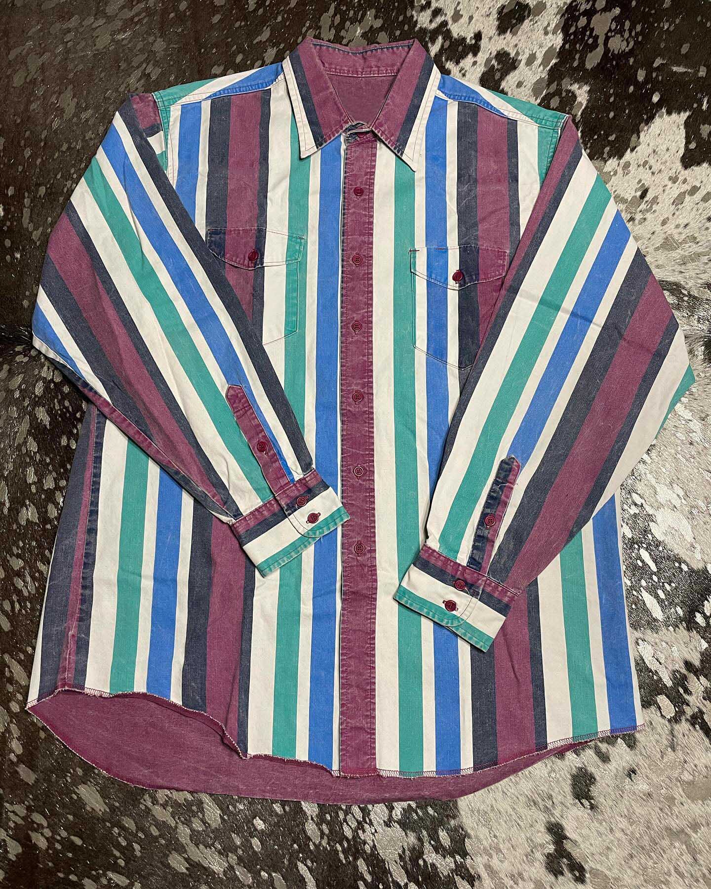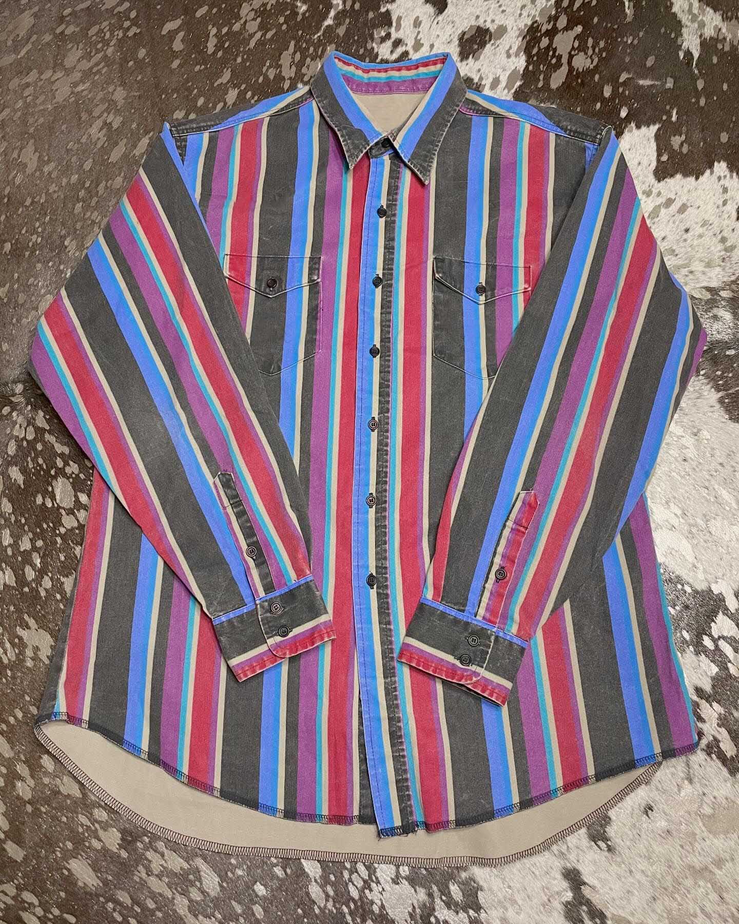 Men's Retro Casual Red and Blue Striped Shirt