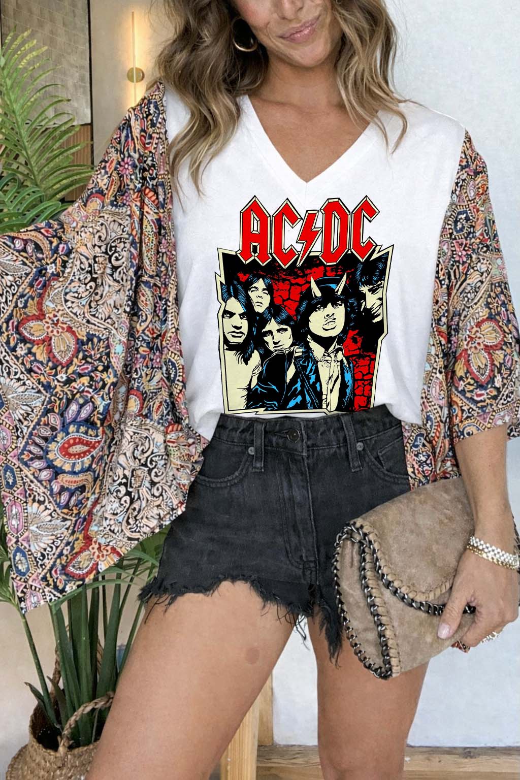 Rock N Roll Vintage Kimono Tee White(No Patch)