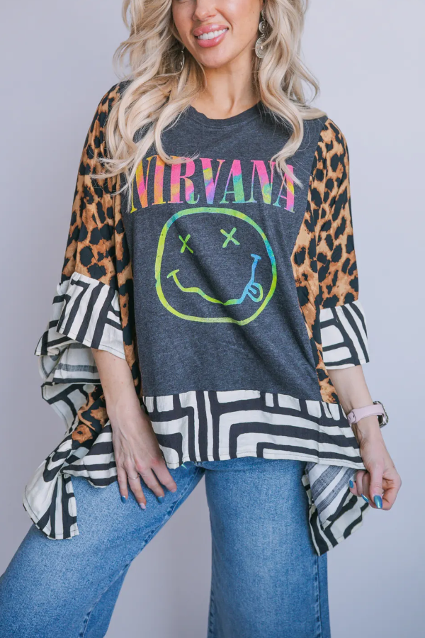 NIRVANA-Print Bat-Sleeve T-Shirt (No Back Pocket)
