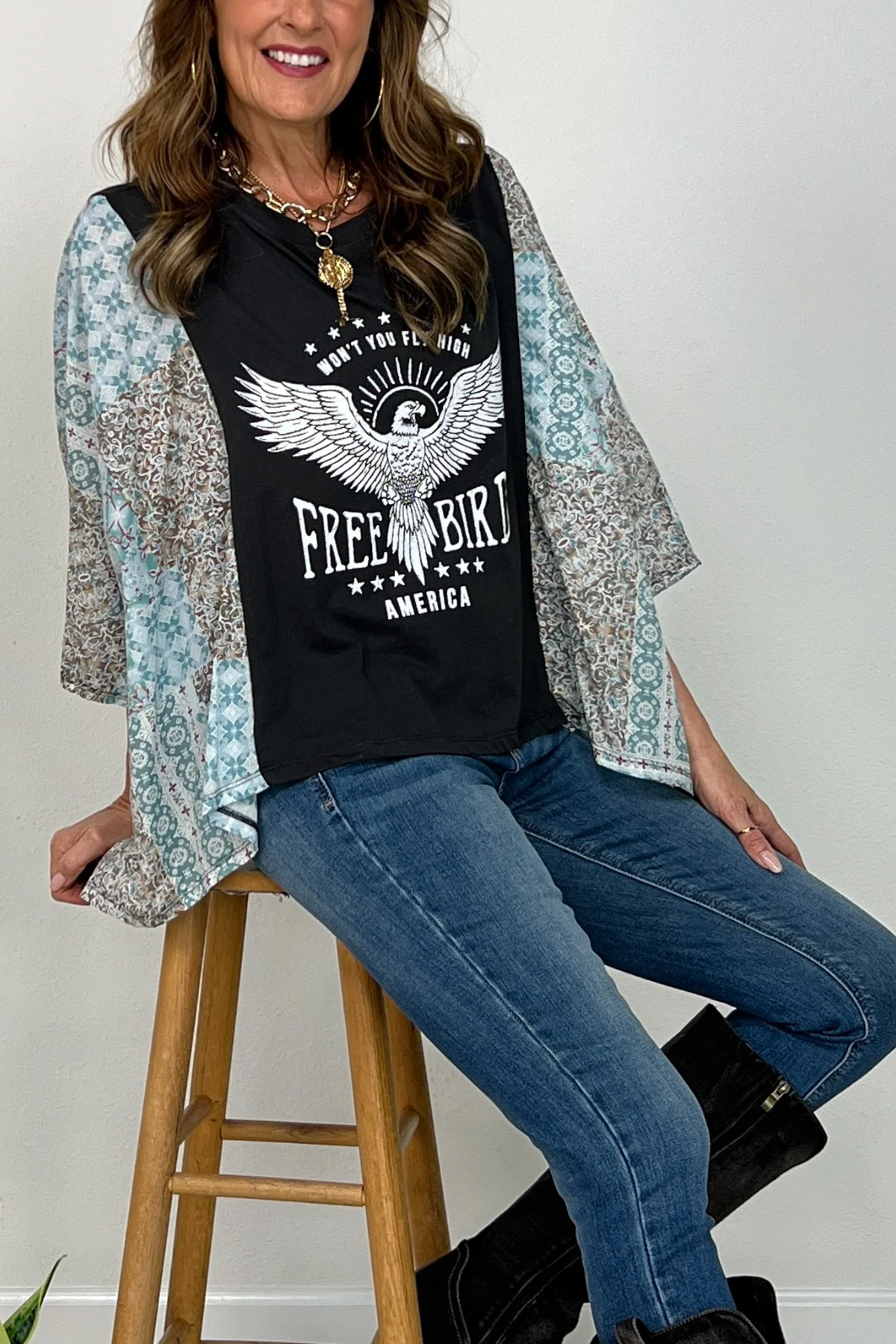 Free Bird America Vintage Graphic Kantha Top