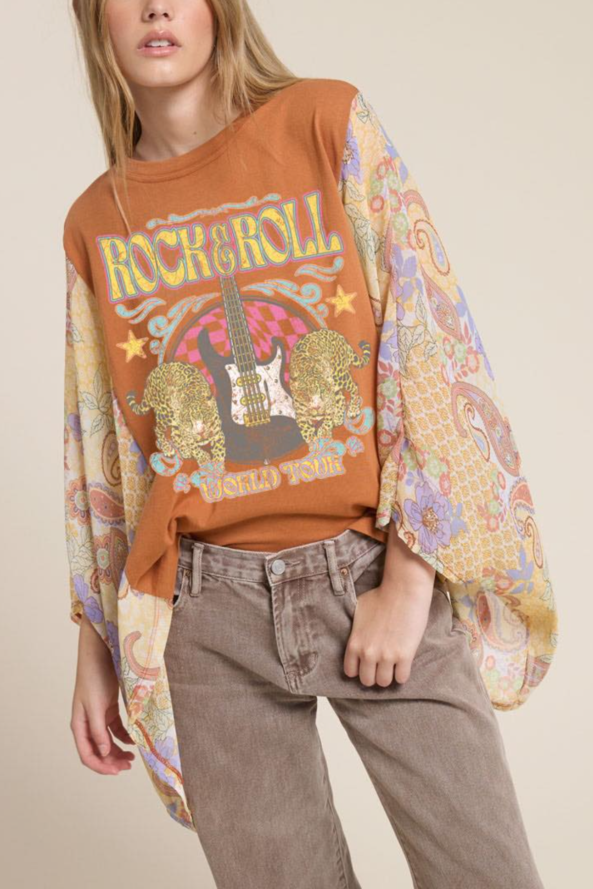 Rock & Roll World Tour Vintage Graphic Kantha Top