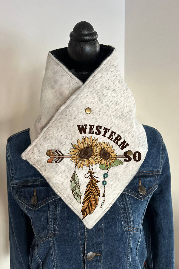 Women's Western Gray Denim Print Warm Neck Cover