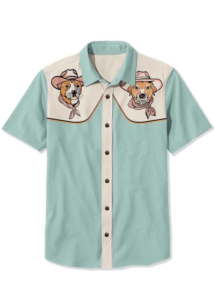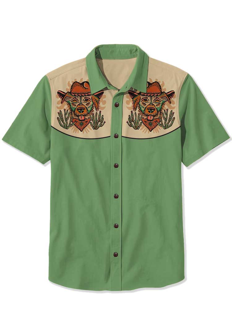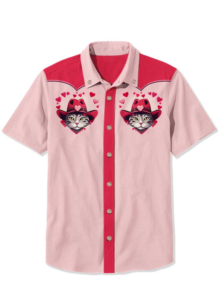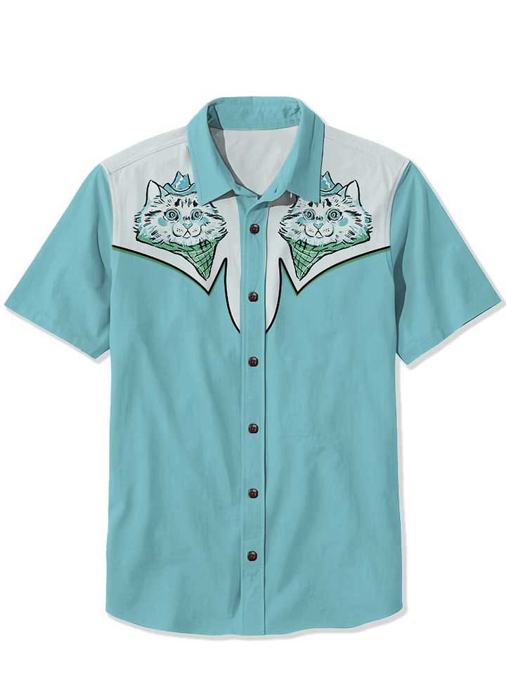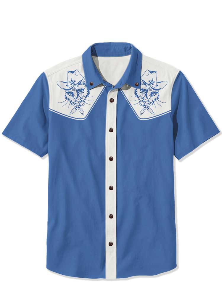 Men's Western Cowboy Cat Printed Casual Shirt