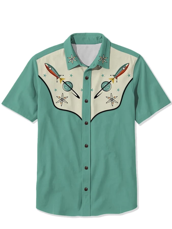 Men's 1950s Western Retro Star Atomic Short Sleeve Shirt