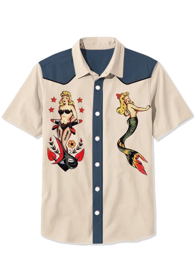 Men's Vintage Mermaid Print Casual Shirt