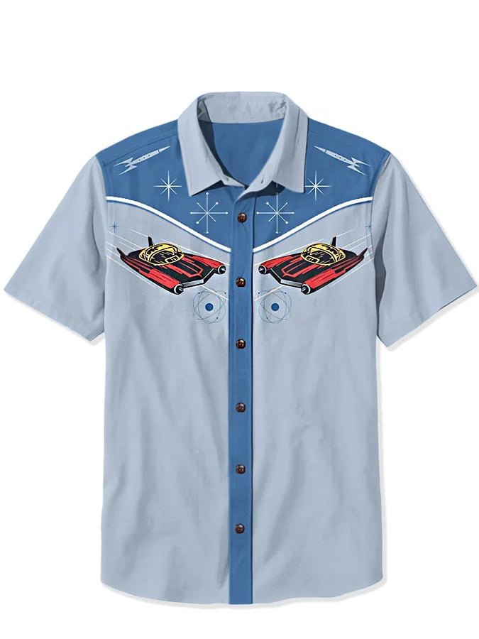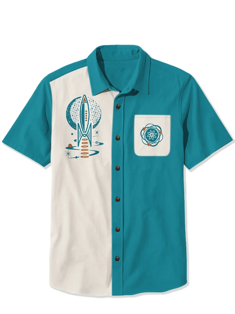 Men's Western 1950s Interstellar Atomic Print Casual Shirt