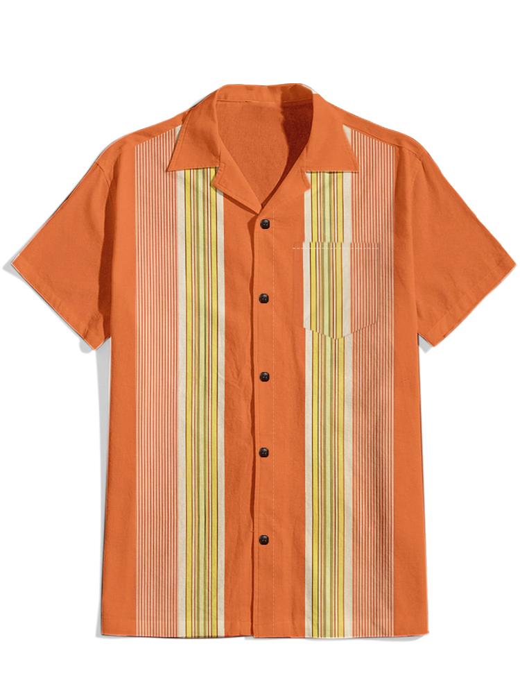 Men's Casual Retro Orange Striped Short Sleeve Shirt