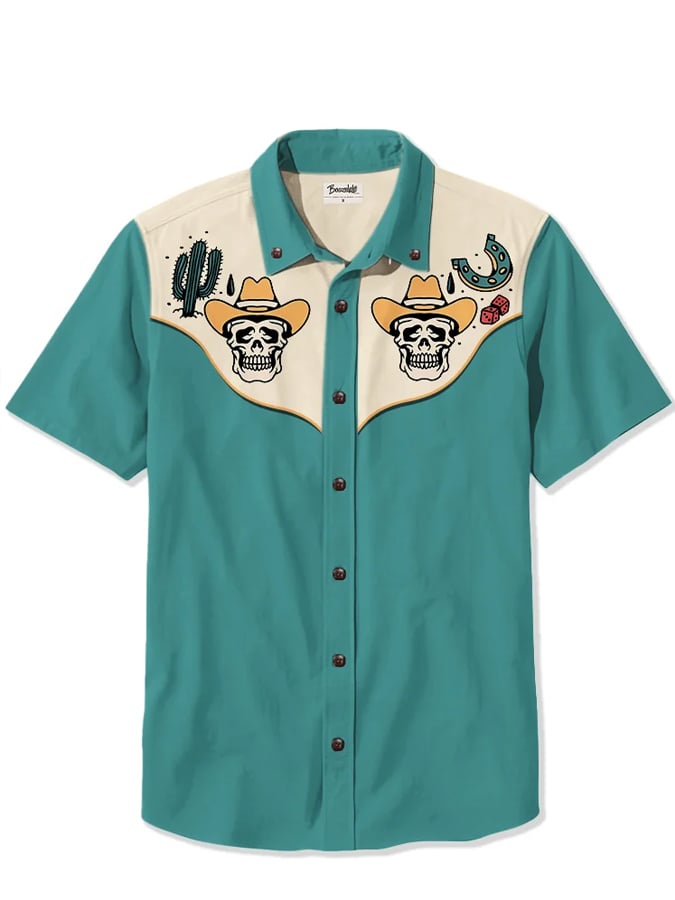Men's Western Retro Cactus And Skull Cowboy Print Casual Shirt