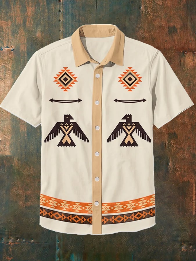 Men's Retro Western Aztec Thunderbird Print Casual Shirt