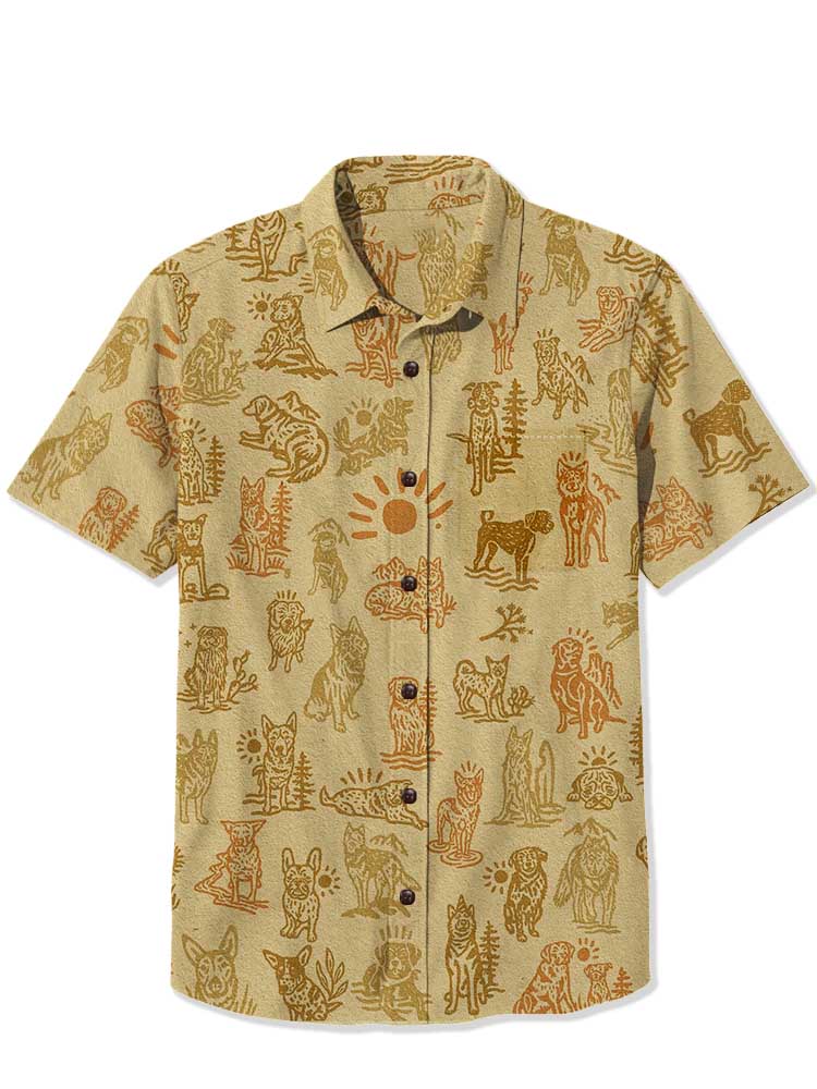 Men's Retro Western Totem Print Pocket Short Sleeve Shirt