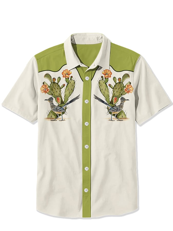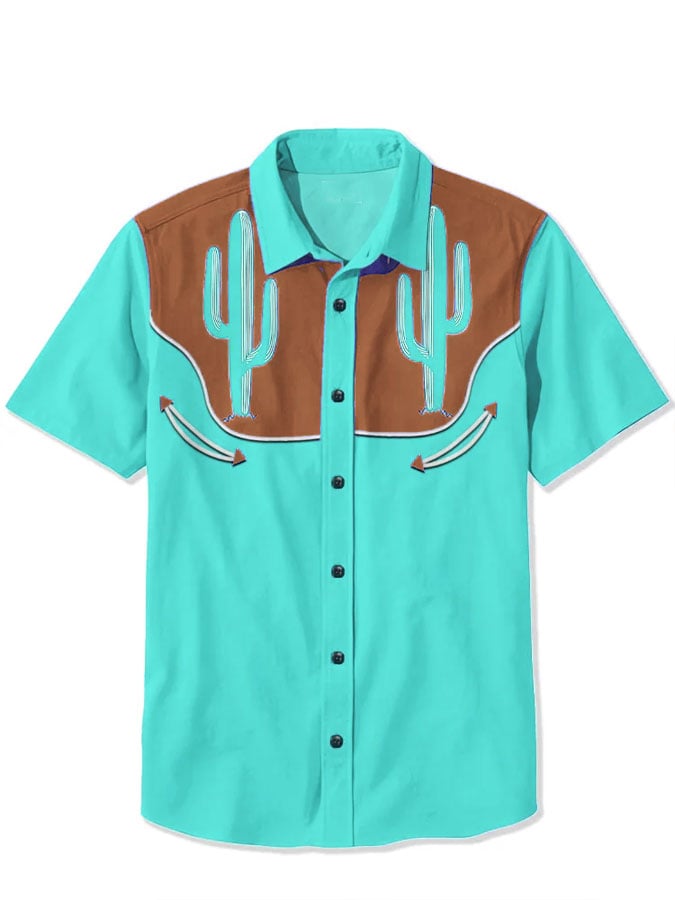 Men's Western Retro Cactus Print Short Sleeve Shirt
