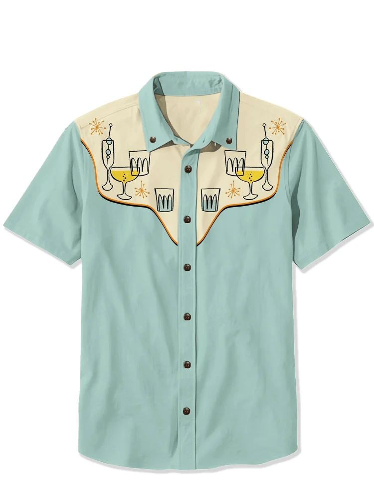 Men's Western 1950s Atomic Cocktail Print Casual Shirt