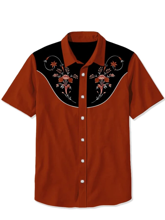 Men's Vintage Flower Cowboy Print Casual Shirt