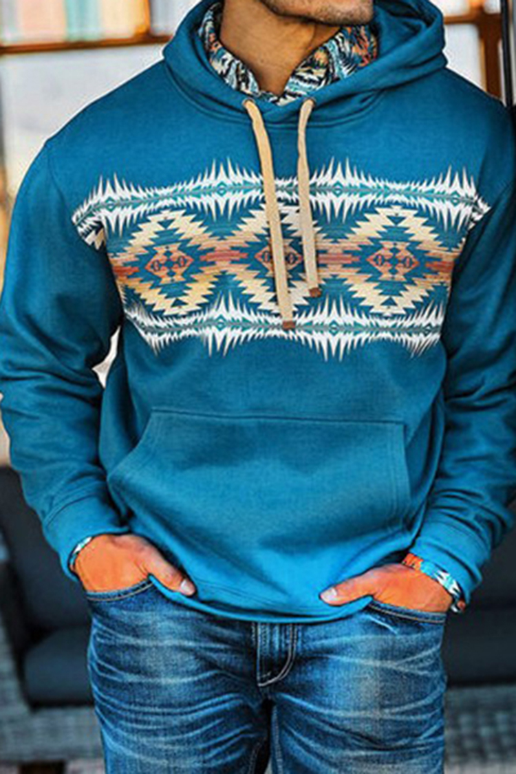 Men's Casual Western Tribal Print Patchwork Hoodie