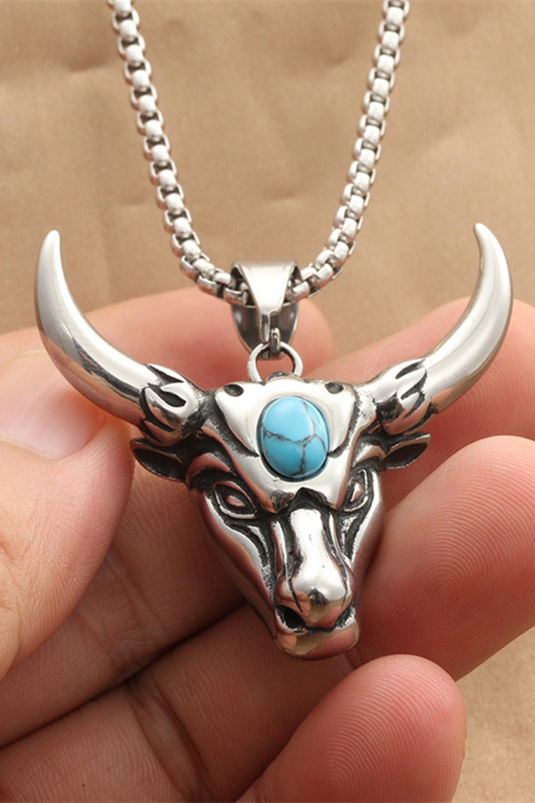 Stainless Steel Turquoise Bull Head Necklace
