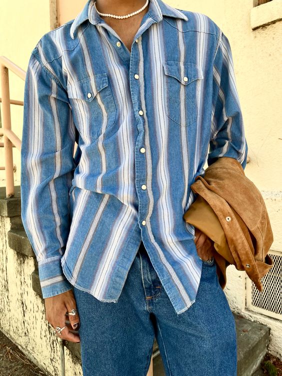 Men's Vintage Western Cowboy Stripe Shirt