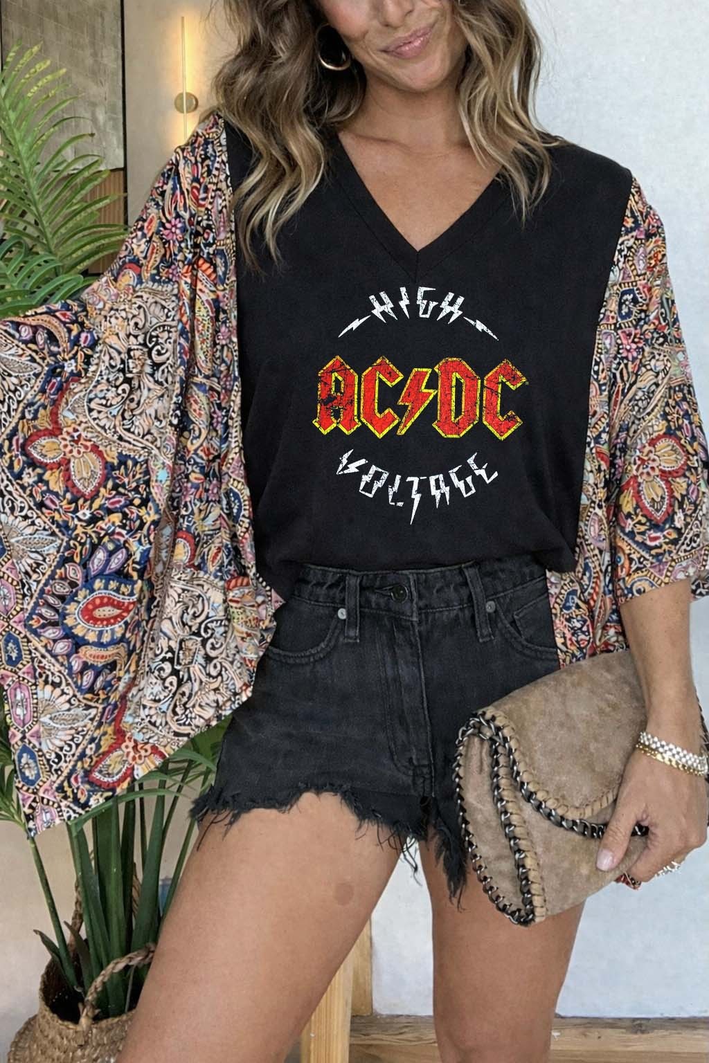 Washed Vintage Graphic Tee with Batwing Sleeve