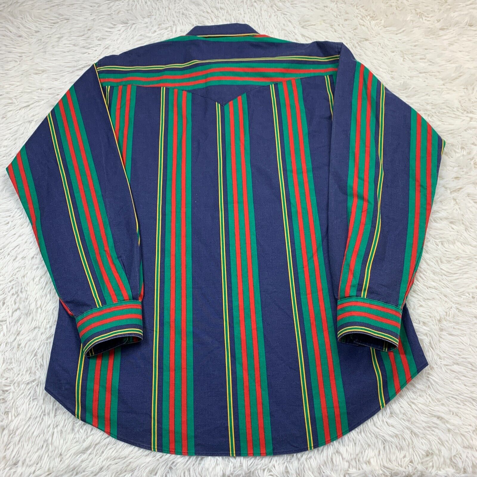 Men's Casual Western Blue Green Striped Long Sleeve Shirt