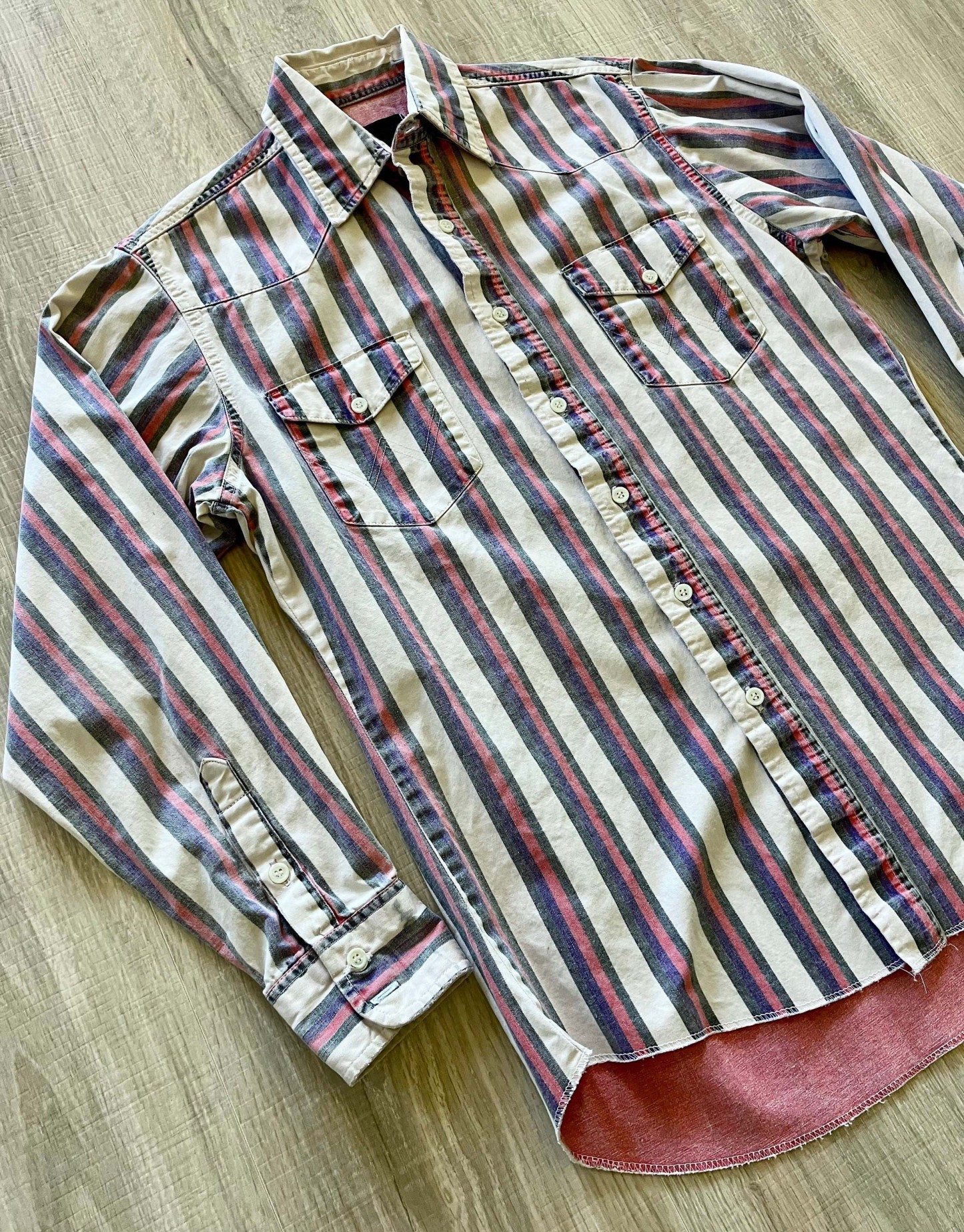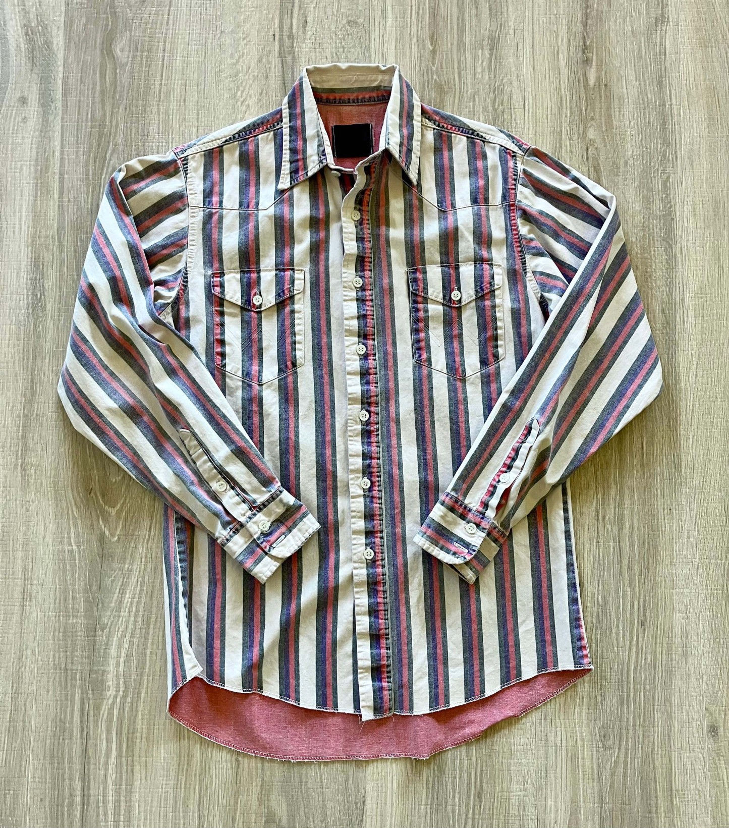 Men's Fashion Western Dark Blue Khaki Striped Long Sleeve Shirt