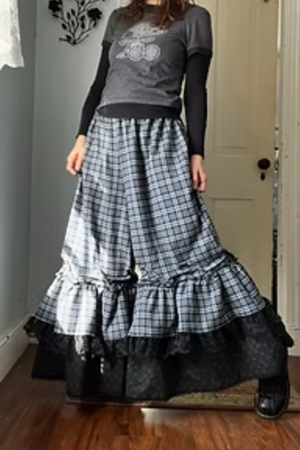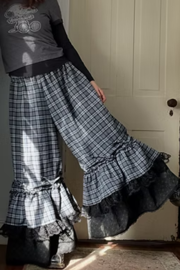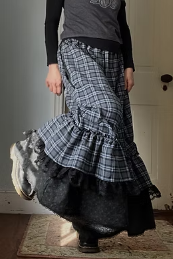 While plaid evokes a vintage British aesthetic and lace embodies feminine grace, their fusion transcends traditional sartorial boundaries. This design is ideally suited for independent women who embrace subcultures, appreciate artistic flair, and seek unique pieces that stand out from the crowd. The multi-layered, draped construction expertly flatters wider hips, heavier thighs, and calf contours; as you move, the hemline sways gracefully—preserving a sense of relaxed ease while adding dynamic fluidity—making it exceptionally effective at concealing figure imperfections. Cut in a voluminous A-line silhouette, this piece is universally flattering and places absolutely no demands on body type, offering superb figure-enhancing effects for both "apple" and "pear" shapes.