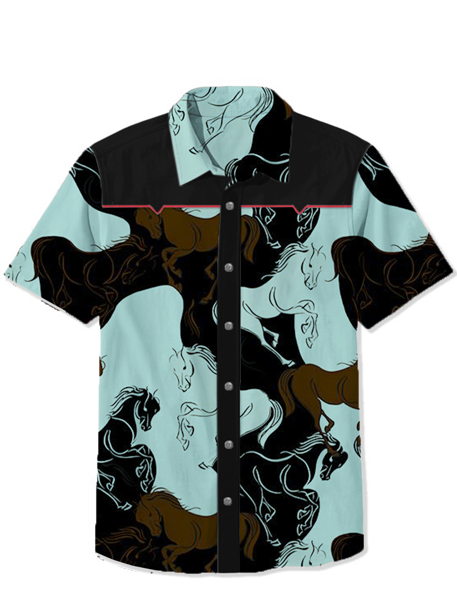 Summer Casual Galloping Horse Print Short Sleeve Shirt