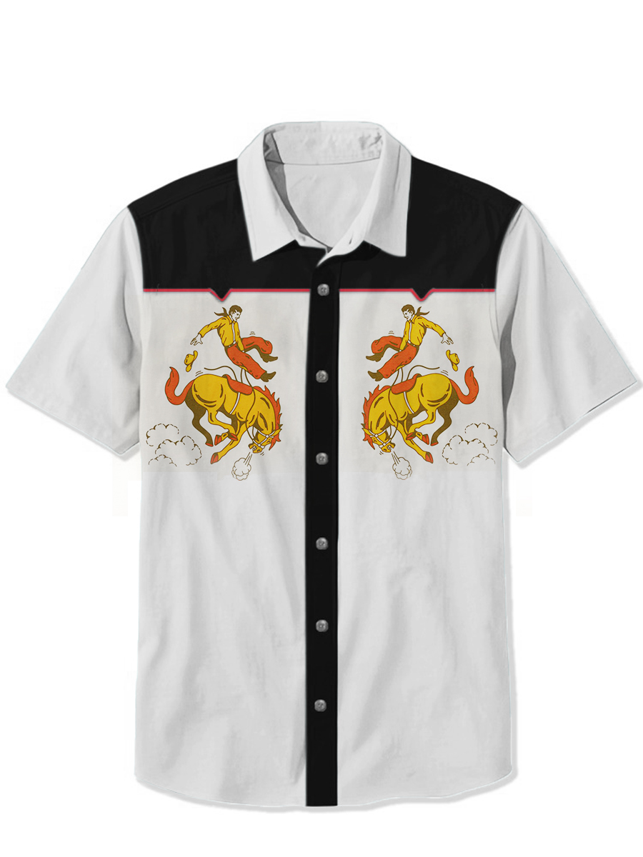 Summer Casual Rodeo Cowboy Print Short Sleeve Shirt