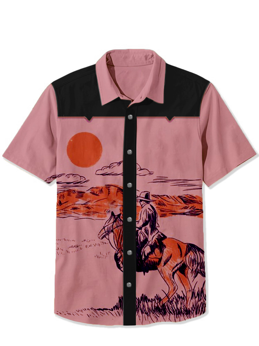 Summer Casual Sunset Print Short Sleeve Shirt