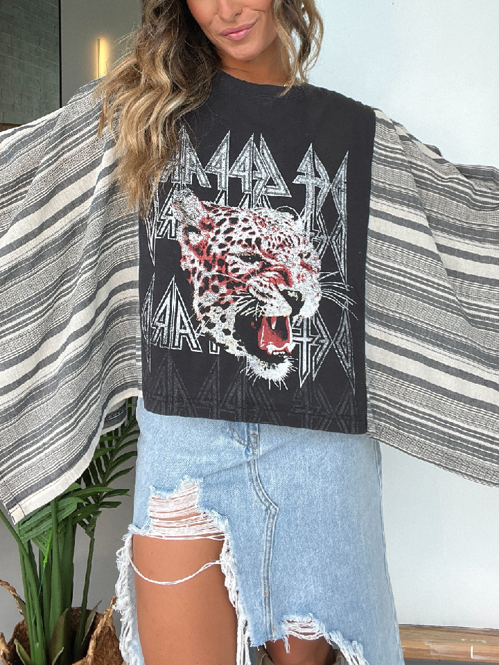 DetailsOne of a kind!Washed Vintage Graphic Tee with Batwing SleeveColor: PictureMaterial: 50% Cotton50% Recycled Mixed FabricSPU:TPCJ25031411Model MeasurementsHeight: 5'2"Bust: 34"Waist: 27"Hips: 36"