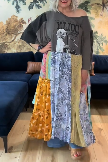 DetailsOne of a kind!Washed Vintage Graphic Tee with Batwing SleeveColor: PictureMaterial: 50% Cotton50% Recycled Mixed Fabric