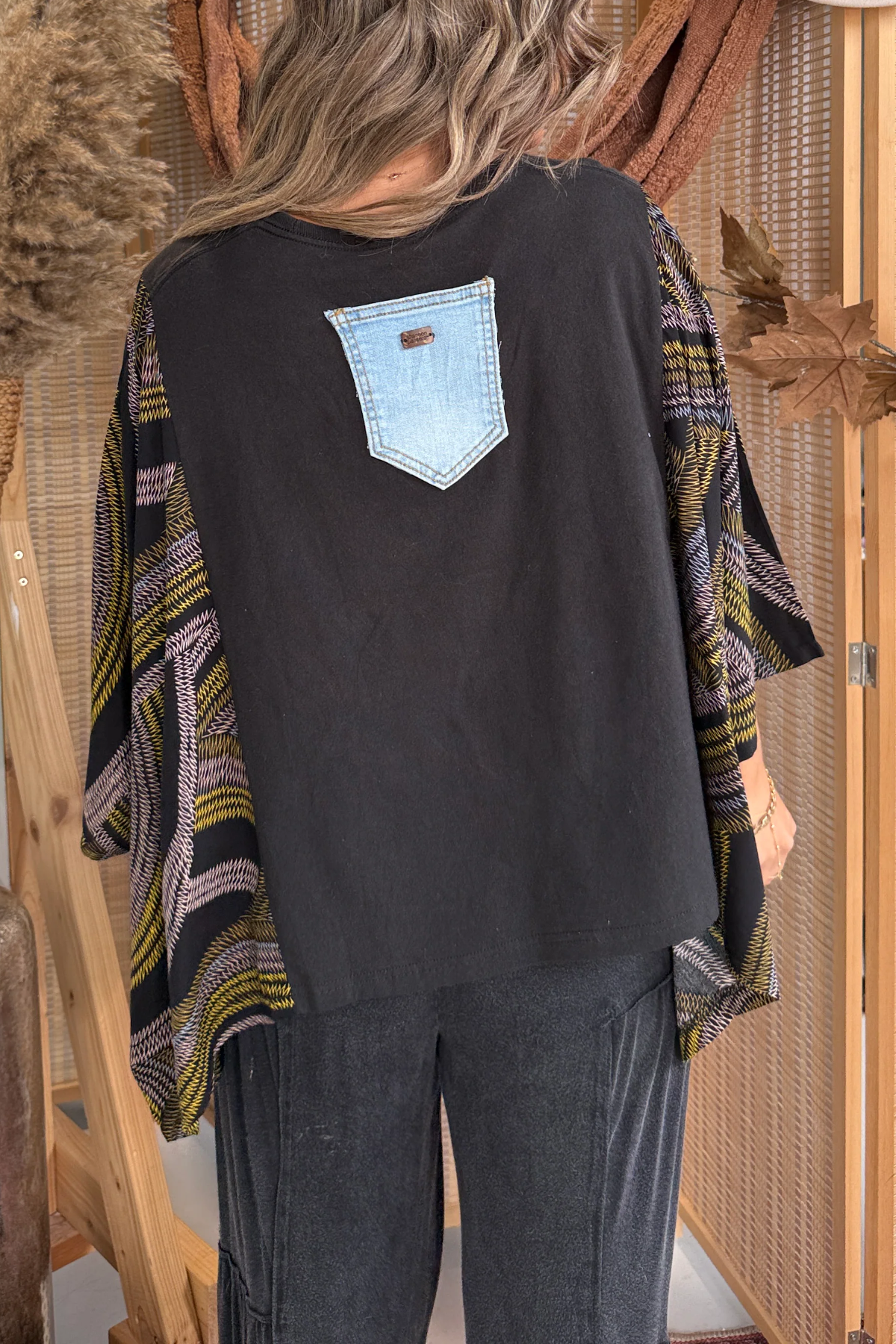 DetailsOne of a kind!Washed Vintage Graphic Tee with Batwing SleeveColor: PictureMaterial: 50% Cotton50% Recycled Mixed FabricSPU:TPCJ25101006Size:One Size Fits MostModel is Wearing a Size OSModelHeight: 5'2"Bust: 34"Waist: 27"Hips: 36"