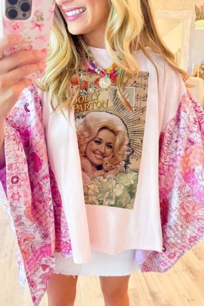 DetailsOne of a kind!Washed Vintage Graphic Tee with Batwing SleeveColor: PinkMaterial: 50% Cotton50% Recycled Mixed FabricSPU:TPCJ25042706Model MeasurementsHeight: 5'2"Bust: 34"Waist: 27"Hips: 36"