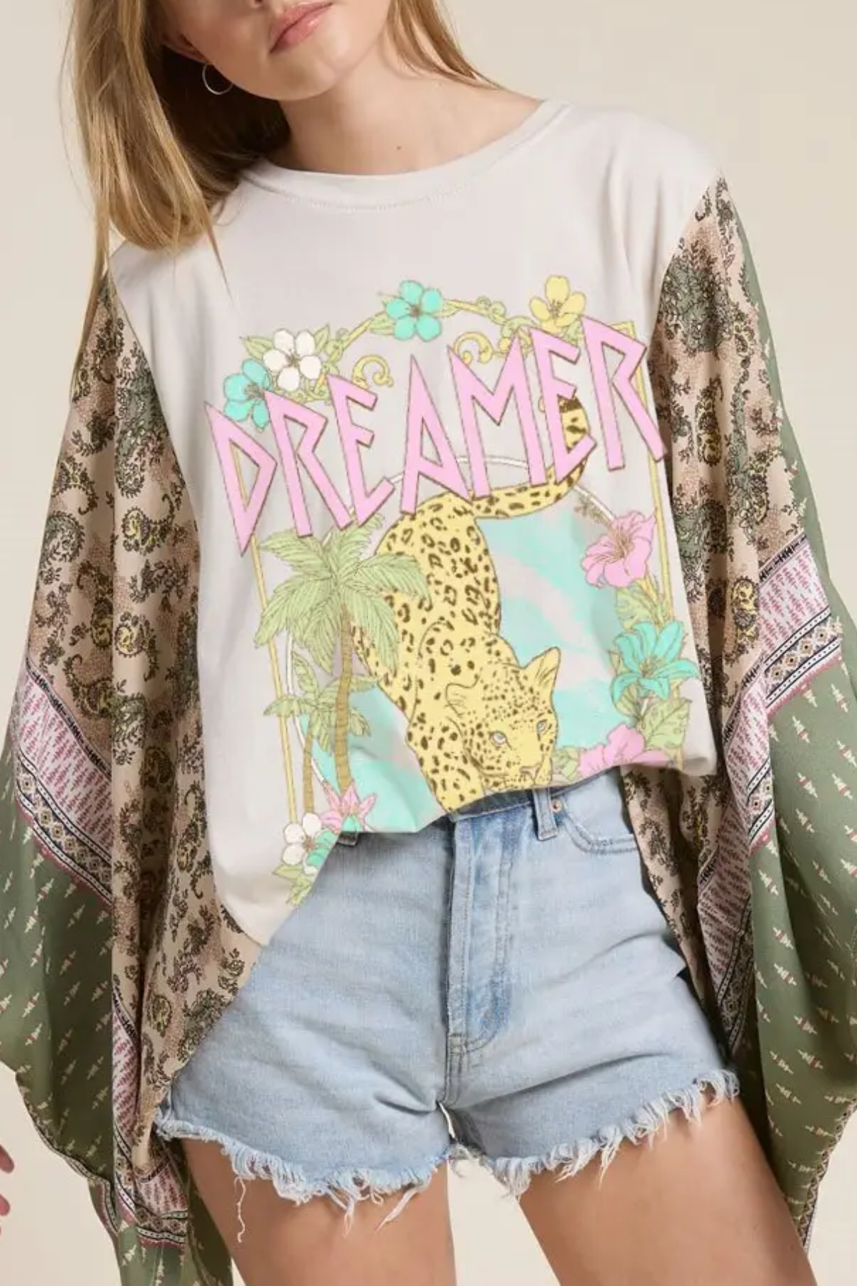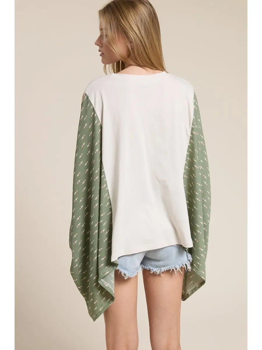 Washed Vintage Graphic Tee with Batwing Sleeve