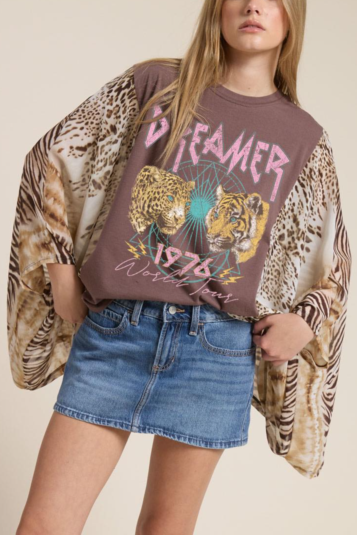 Washed Vintage Graphic Tee with Batwing Sleeve