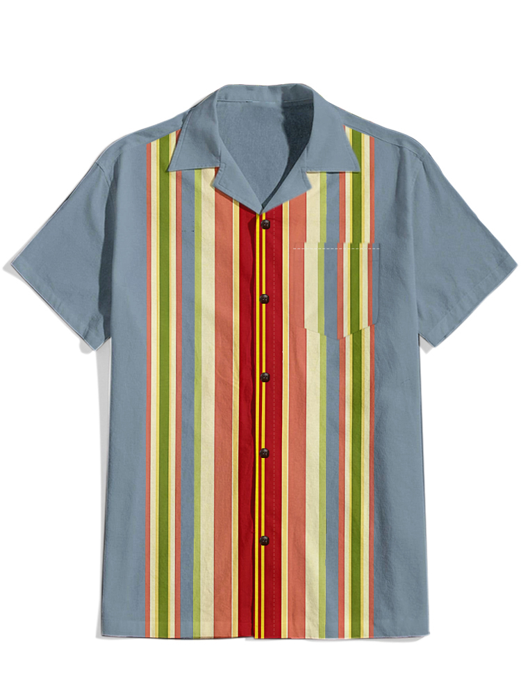 Pattern Type:StripedSleeve Type:Short sleevesElasticity:Slightly stretchyThickness:LightweightMaterial:Cotton-blend,LinenNeckline:Shirt CollarOccasion:DailyStyle: