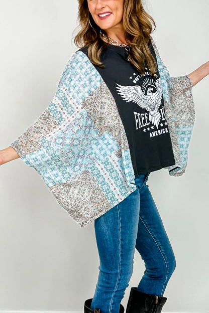 Washed Vintage Graphic Tee with Batwing Sleeve