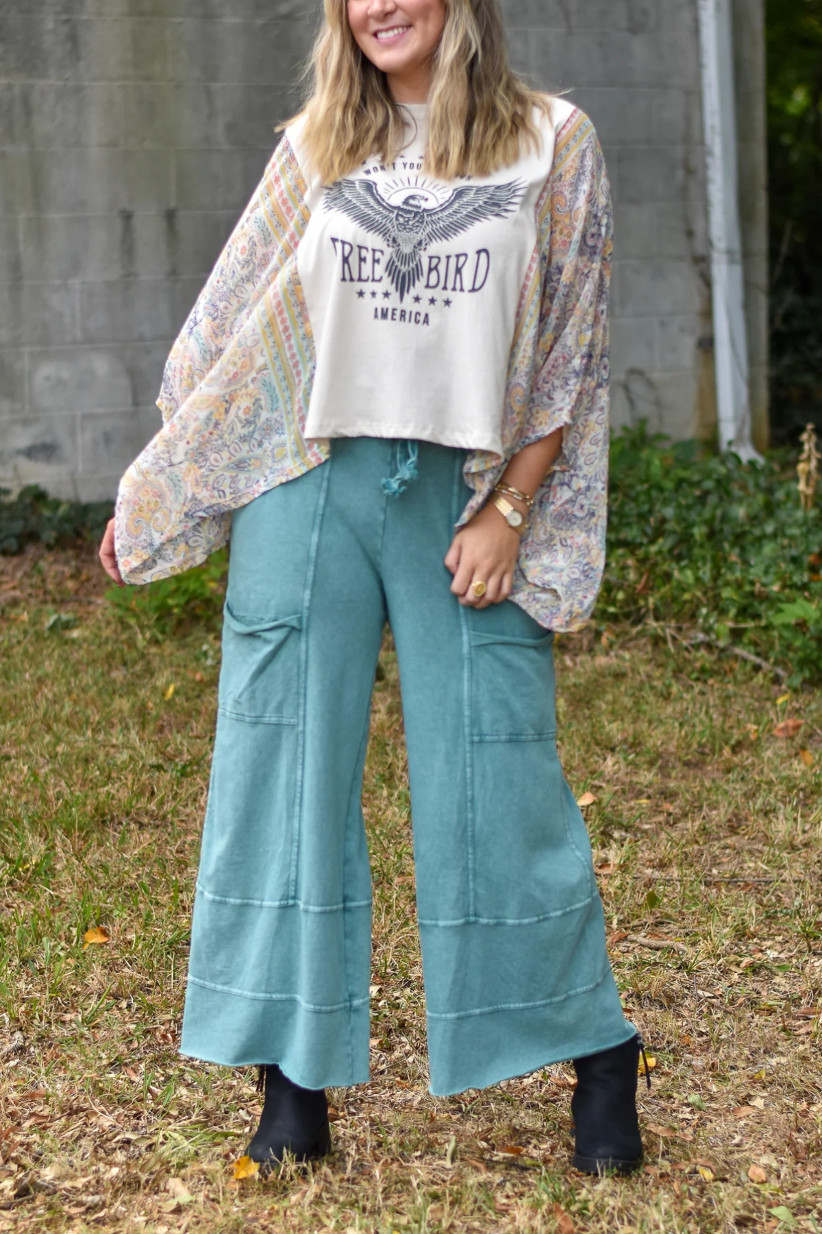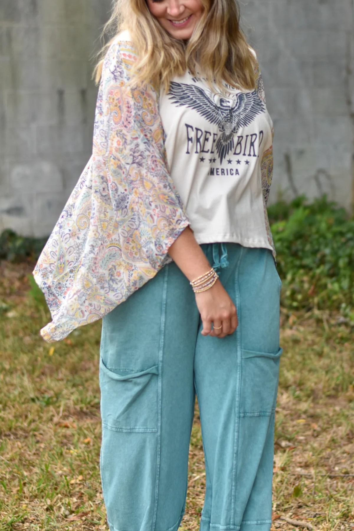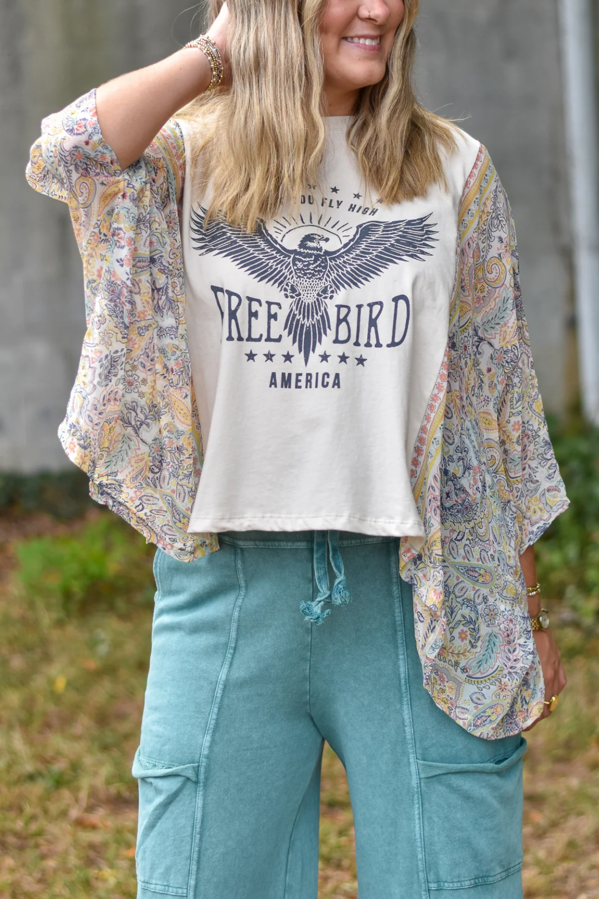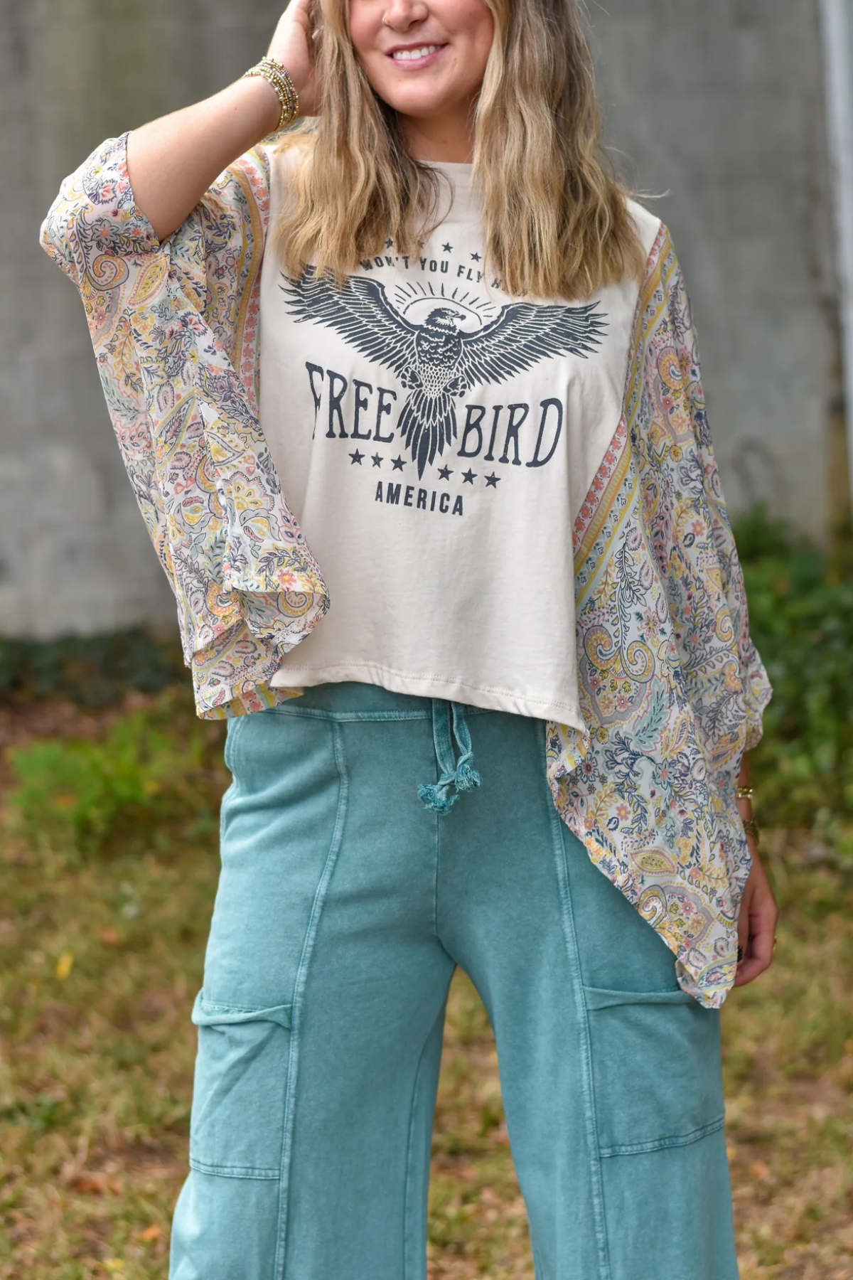 Washed Vintage Graphic Tee with Batwing Sleeve
