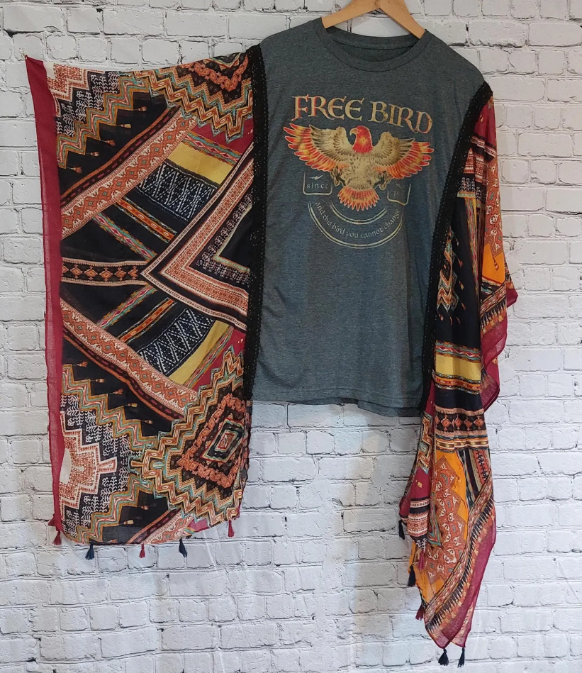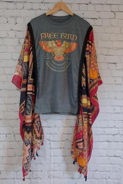 DetailsOne of a kind!Washed Vintage Graphic Tee with Batwing SleeveColor: PictureMaterial: 50% Cotton50% Recycled Mixed Fabric
