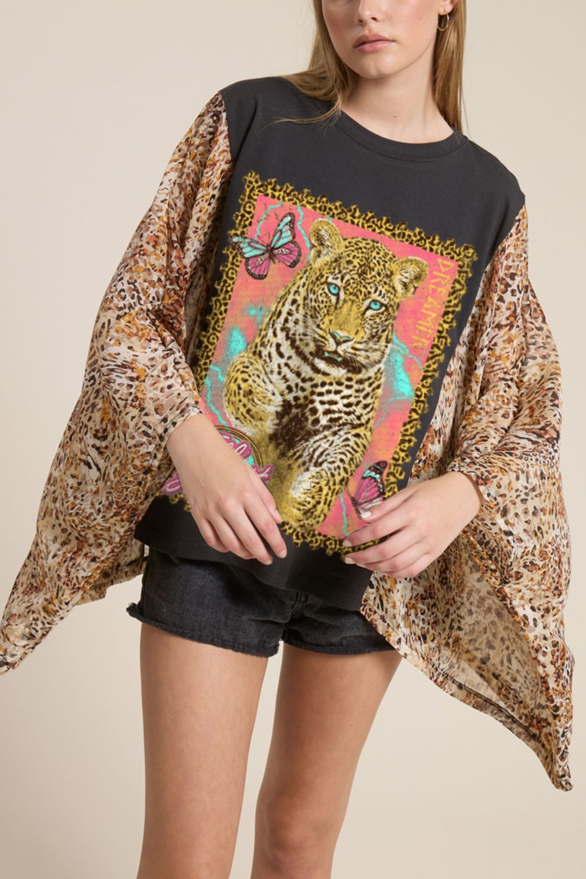 Washed Vintage Graphic Tee with Batwing Sleeve