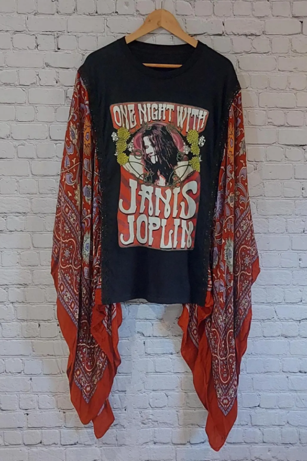 DetailsOne of a kind!Washed Vintage Graphic Tee with Batwing SleeveColor: PictureMaterial: 50% Cotton50% Recycled Mixed Fabric