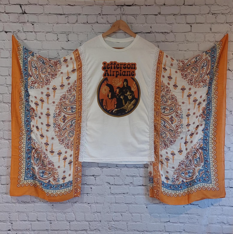 DetailsOne of a kind!Washed Vintage Graphic Tee with Batwing SleeveColor: PictureMaterial: 50% Cotton50% Recycled Mixed Fabric