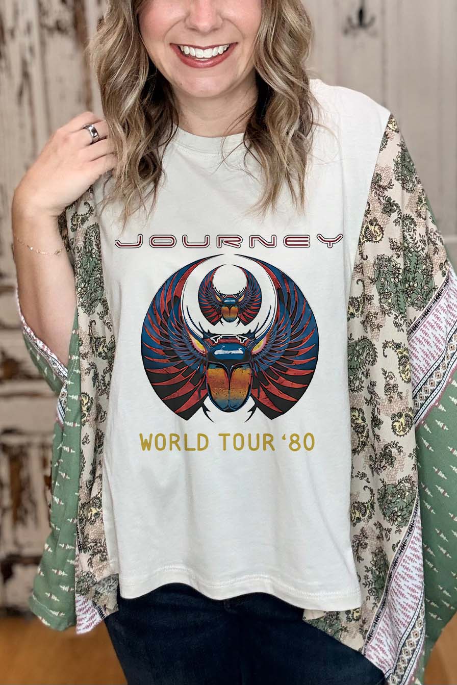 Washed Vintage Graphic Tee with Batwing Sleeve