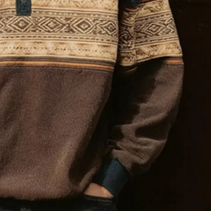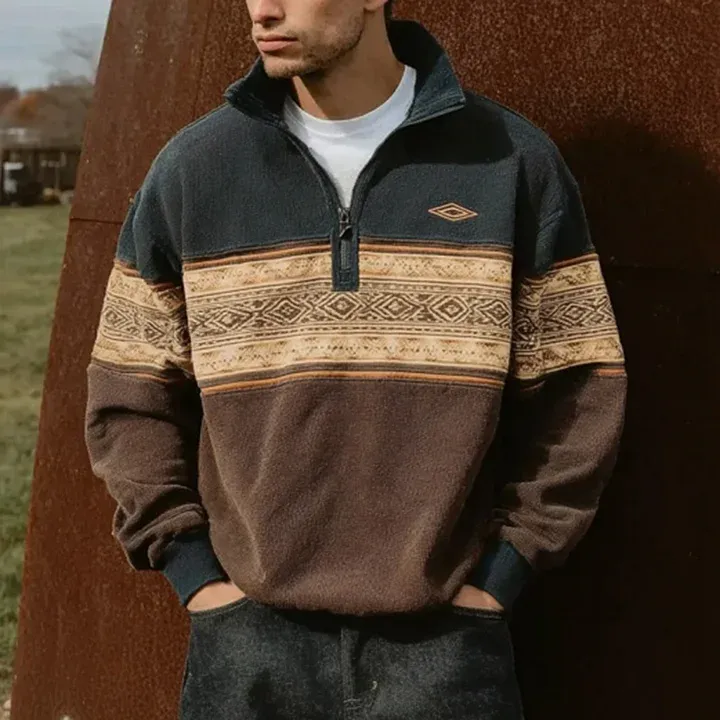 Men's Loose Casual Retro College Style Half-open Collar Stitching Printed Sweatshirt