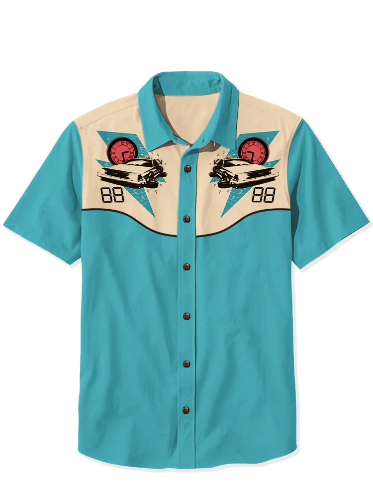 Mens 1950s Western Vintage Cars Short Sleeve Shirt