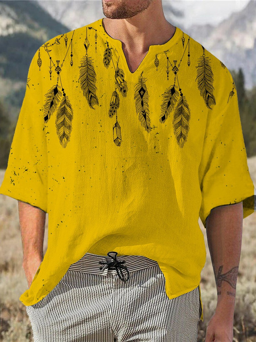 Men's Casual Cotton Linen V-Neck Top